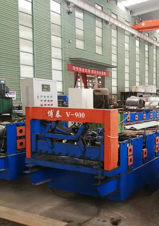 900压瓦机采用高水平自动控制软件,实现生产信息化管理,整个压瓦机设备机组自动化控制系统用高集成的网络,使自动化系统性能优异,压瓦机设备还具有操作、维护、保养以及机械的调试、模具更换容易等优点。900型彩钢压瓦机主要由进料导入平台、成型主机、成型剪切装置、液压站、电脑控制系统等几部分组成。选装配置有普通放料机、液压放料机、自动剁料机等。产品广泛应用于各种工业厂房、住房、仓库屋面及墙面制作且美观大方、经久耐用。