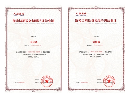 为确保新设备效率高、规范运行,北京博泰钢结构高度重视人才培养与技术沉淀。公司组织两名核心操作人员参加大族激光切割机专项培训,系统学习设备原理、操作规范、安全管控及故障排查等全流程知识。经严格考核,两名员工顺利取得培训结业证书,成为驾驭新设备的力量,确保设备从投产初期即实现稳定运转。
